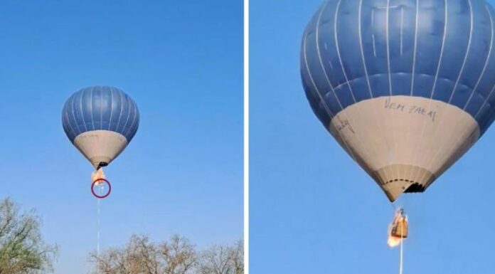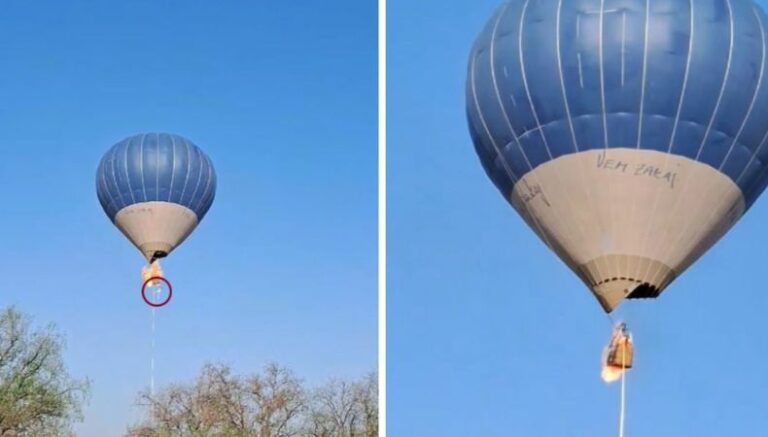 En una de las imágenes que circularon por redes sociales, se observa que uno de los tripulantes se arroja del globo cuando las llamas comienzan a abarcar todo el perímetro del medio de transporte, informa la prensa.
