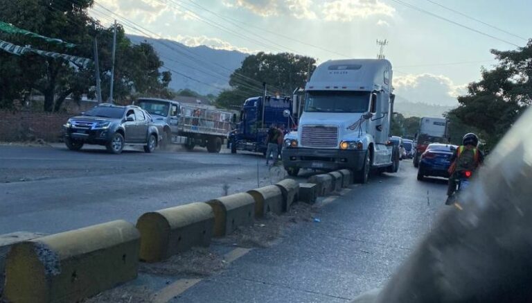 En el desvío de San Juan Opico, justo para incorporarse a la carretera Panamericana, el tráfico se encuentra completamente detenido, debido a que un tráiler ha quedado encima de los separadores de la carretera. Según información, una grúa ya se encuentra realizando trabajos para removerlo.