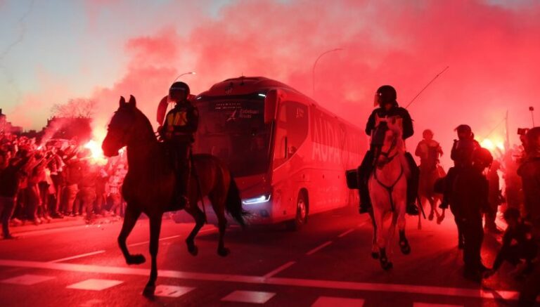 Debido al partidazo entre el conjunto “Colchonero” y el Inter de Milan, la afición del equipo español del Atlético de Madrid, montó un recibimiento muy particular para alentar a sus jugadores, que tendrán una dura tarea ante los italianos.
