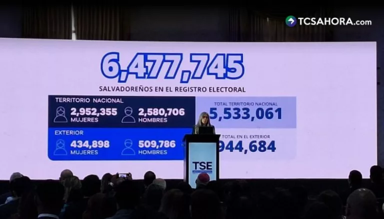 De acuerdo con datos del ente colegiado, 6 millones 477 mil 745 salvadoreños están en el registro electoral, de los cuales 5 millones 533 mil 61 se encuentran en el país y 944 mil 684 en el exterior.