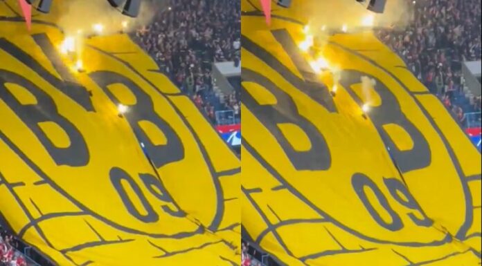 El tifo que sufrió el daño fue el que tenía el logo del Borussia Dortmund en lo que fue un acto controlado, pero no dejó de ser peligroso ante la presencia de fuego.