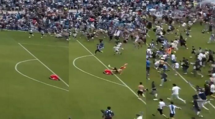 Las emociones saltaron a flor de piel con el silbatazo final, pues los aficionados ingresaron al campo del ‘Rico Pérez’ como una gran ola. De hecho, dicha escena se volvió viral a través de redes sociales porque justo en el momento que sucedió la invasión, un seguidor del equipo se pasó llevando al portero Carlos Abad después de resbalarse sobre el césped. El también capitán del equipo fue impactado por detrás mientras estaba hincado, pero posteriormente recibió el cariño de su hinchada.
