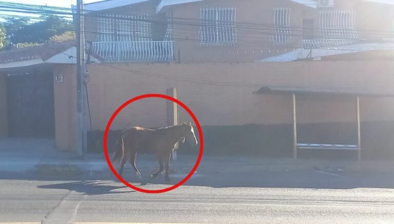 En un hecho curioso, esta mañana, usuarios de redes sociales reportaron un caballo deambulando por algunas zonas muy concurridas del gran San Salvador; entre ellas: la plaza Divino Salvador del Mundo, bulevar Constitución y Alameda Roosevelt.