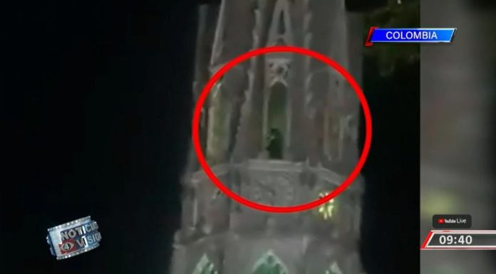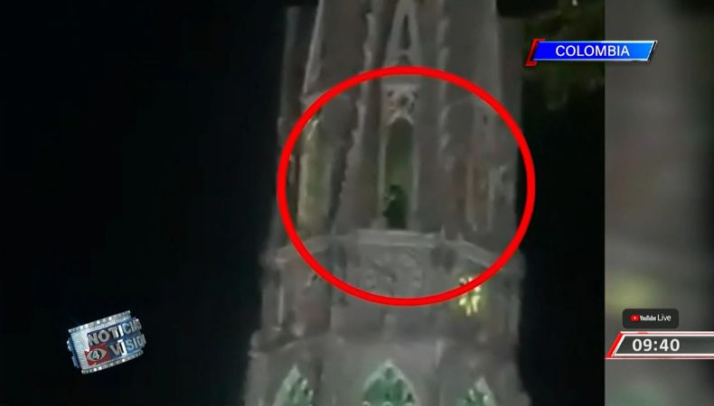 Hasta el momento se desconoce qué o quién es lo que camina en una de las torres de la basílica de Nuestra Señora de los Dolores en Colombia.