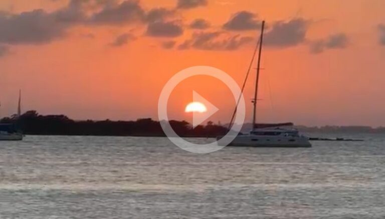 En las imágenes enviadas como cortesía a tcsahora.com, se ve uno de los más bellos atardeceres, donde el azul del cielo y el azul del mar, se juntan con un color naranja brillante que muestra cómo el sol se va ocultando de a poco, para darle la bienvenida a la noche.