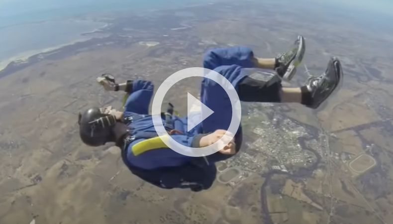 «Posiblemente el momento más aterrador de mi vida. El 14 de noviembre de 2014, mientras hacía la etapa cinco de mi programa de Caída Libre Acelerada, tuve una experiencia cercana a la muerte. Alrededor de 9,000 pies tuve un ataque, al intentar girar a la izquierda. Luego paso los siguientes 30 segundos en caída libre inconsciente. Afortunadamente, mi jefe de salto logra tirar de mi cable de apertura a unos 4,000 pies. Tomo conciencia a 3,000 pies y aterrizo de manera segura al suelo.»
