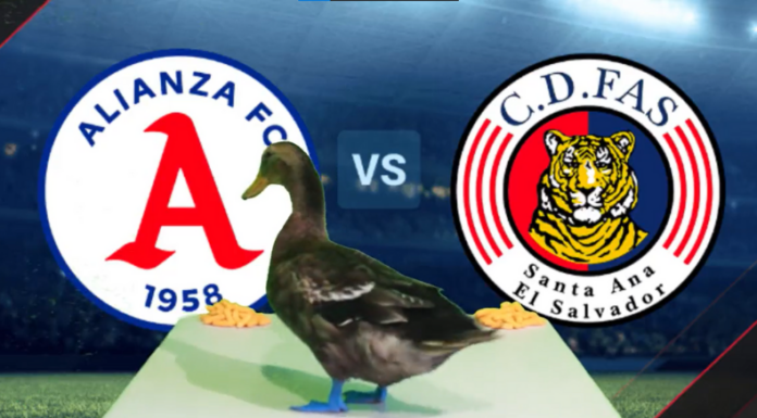 Así como usted lo puede ver, un usuario de Twitter llamado @omarangulo503 se tomó la tarea de colocar a un pato a elegir si Alianza o FAS ganará el partido de vuelta de los Cuartos de Final, mire usted mismo la predicción: