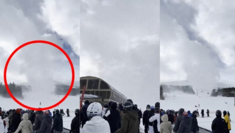 Esto sucedió en Breckenridge Ski Resort, una estación de esquí en Colorado, durante el pasado fin de semana fue filmado por un grupo de esquís que, desprevenidamente, se encontraron con este tornado de nieve.