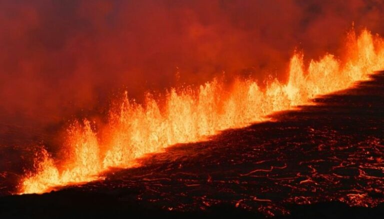 Imágenes de video en directo muestran la lava escapando de una fisura en el suelo. La erupción comenzó poco antes de las 04H00 GMT (hora local), informó la Oficina Meteorológica de Islandia.