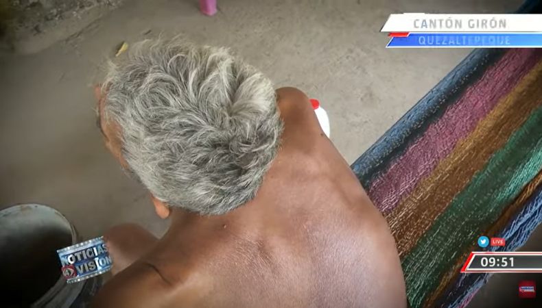 “Una bomba que lanzó un avión me dañó las cuerdas vocales y mi columna vertebral”, expresó Crespín. Su hijo es su único apoyo. Él le debe cambiar las sondas cada quince días, debido a las consecuencias del daño. Sin embargo, comentó que, cuando se le obstruyen, debe llevarlo de emergencia para que puedan hacerle los cambios inmediatos.