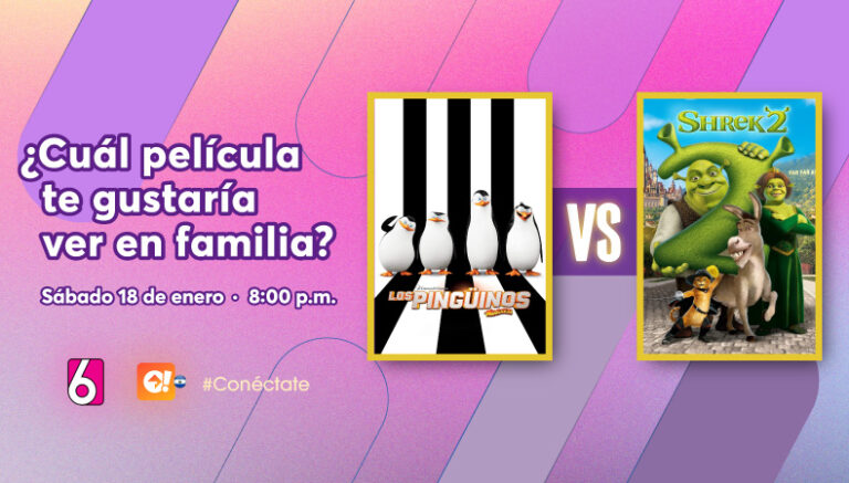 Esta semana Canal 6 tiene un nuevo versus preparado para que seas tú quien elija la película que desea ver este próximo sábado 18 de enero en su programación, a las 8:00 p.m. Los dos filmes que se enfrentan son emblemáticos personajes del mundo de la animación: Los Pingüinos de Madagascar y Shrek 2.