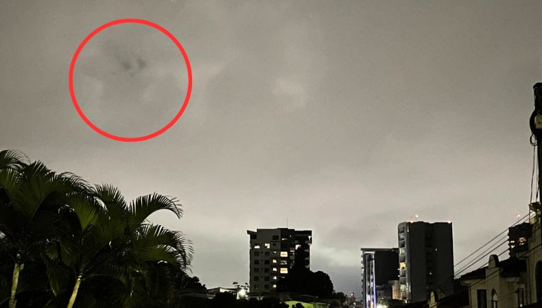 En el mismo sentido, la paraeidolia ocurrió en una de las fotografías captadas por las cámaras de TCS Ahora, donde se muestra la forma de un presunto rostro, con ojos, boca y nariz, en el cielo nublado y a punto de llover.
