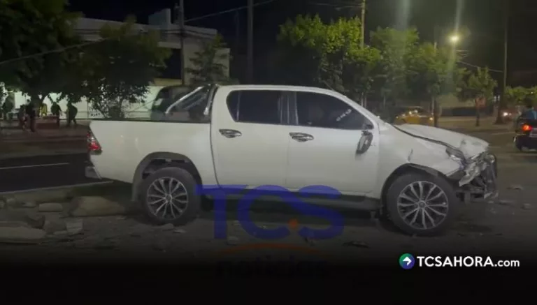 Cámaras de videovigilancia de la municipalidad captaron el momento del percance, donde se ve que el automóvil también chocó contra un poste del tendido eléctrico.