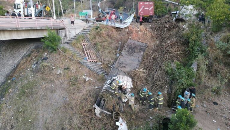 Según el reporte de la PNC, el automotor tuvo desperfectos mecánicos en el sistema de freno, lo que originó que perdiera el control, cayendo en una de las laderas del río.