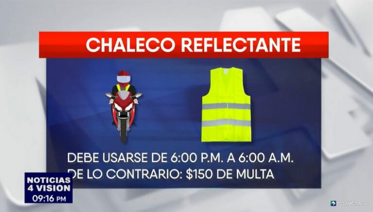 Con la reciente reforma a la Ley de Tránsito, los motociclistas deben portar chalecos reflectantes al circular por las calles entre las 6 de la tarde y las 6 de la mañana. Esta medida busca aumentar la visibilidad de los conductores y reducir los riesgos de accidentes en condiciones de poca luz. Aquellos que no cumplan con esta normativa podrían enfrentar multas de hasta 150 dólares.