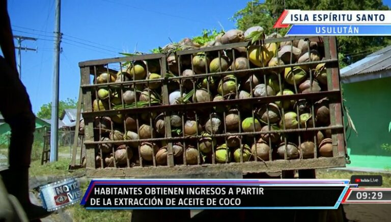Los habitantes explican que, para llegar hasta las plantaciones, utilizan moto y carretones. Con estos recorren las más de 100 manzanas cubiertas de coco indio, administradas por los miembros de la Cooperativa el Jobal, que actualmente tiene 174 socios.