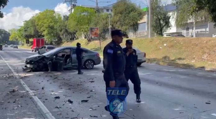 Esta noche la Policía Nacional Civil (PNC) realiza la inspección de un fuerte accidente de tránsito sobre la Diagonal Cipactli, colonia Atlacatl, San Salvador.