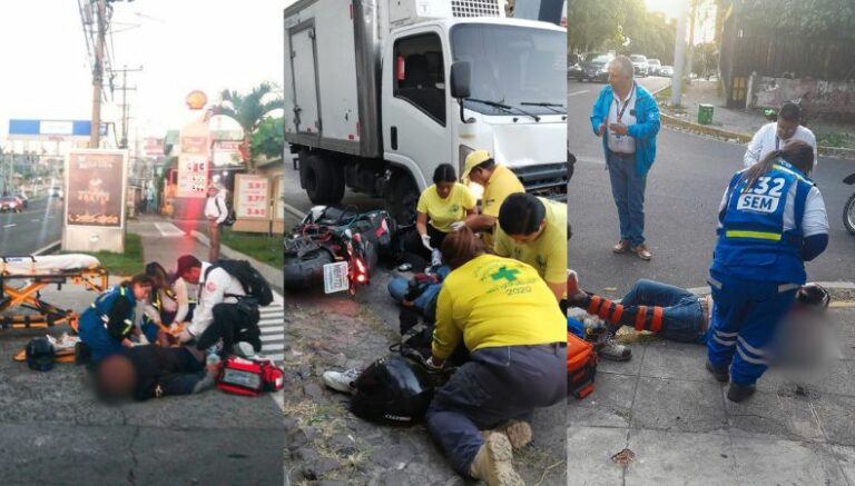 Comandos de Salvamento brindó asistencia prehospitalaria a un motociclista de 25 años que presentó lesiones tras impactar con un camión en la 18 avenida Sur y calle Delgado, San Salvador; en las cercanías del mercado Tinetti.