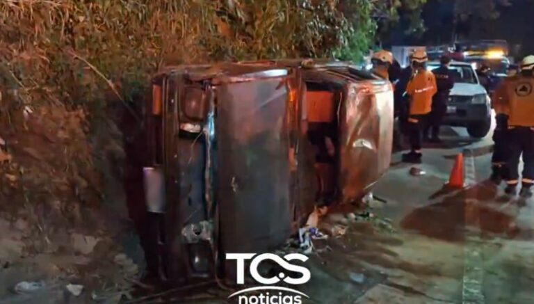 Un fuerte accidente de tránsito ocurrió en el kilómetro 4 de la carretera Troncal del Norte, en el sentido que conduce de San Salvador hacia Apopa. El percance vial dejó a varias personas lesionadas, por lo que generó carga vehicular por unos momentos en la zona. Además, en las imágenes se observa que un vehículo volcó.