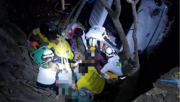 Esta mañana, Cruz Verde Salvadoreña, por medio de sus cuentas oficiales en redes sociales, informó sobre un percance en el que un vehículo se precipitó en un barranco. El hecho se registró en la calle Plan del Pino, sector del Puente Las Mulas, en Soyapango.