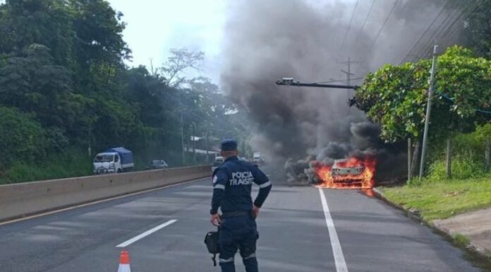 En la carretera que conduce de Zaragoza a San Salvador, se reportó otro carro incendiado esta mañana.
