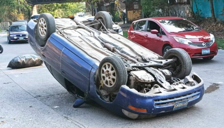 Esta tarde, se registró un vehículo volcado en la carretera Troncal del Norte, en el kilómetro 5. Las autoridades atendieron a dos personas, que resultaron con lesiones leves. El hecho afectó la circulación vehicular, en dirección hacia Apopa.