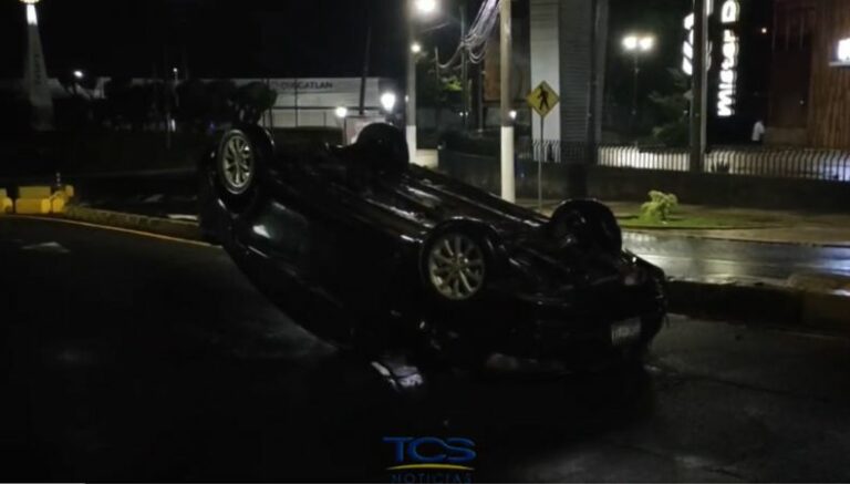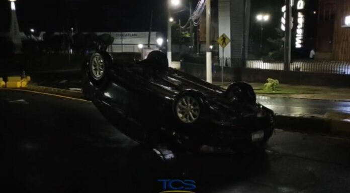 En horas de la madrugada de este día 7 de julio, un vehículo volcó sobre el redondel El Platillo, en Santa Tecla.