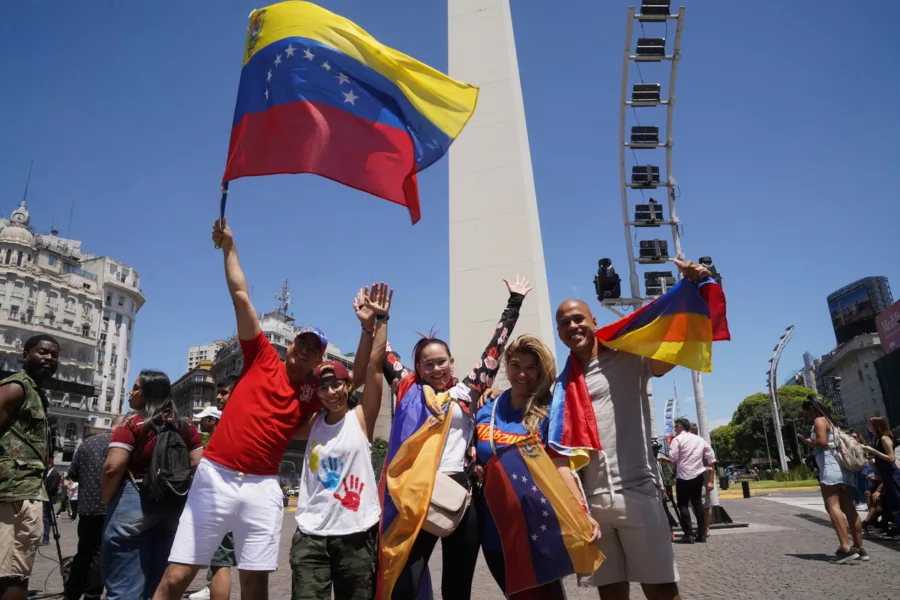 En Buenos Aires, venezolanos comenzaron a reunirse desde temprano en el Obelisco porteño. Con banderas, cánticos y gestos de festejo, la comunidad reaccionó al anuncio de Trump sobre la detención de Nicolás Maduro.