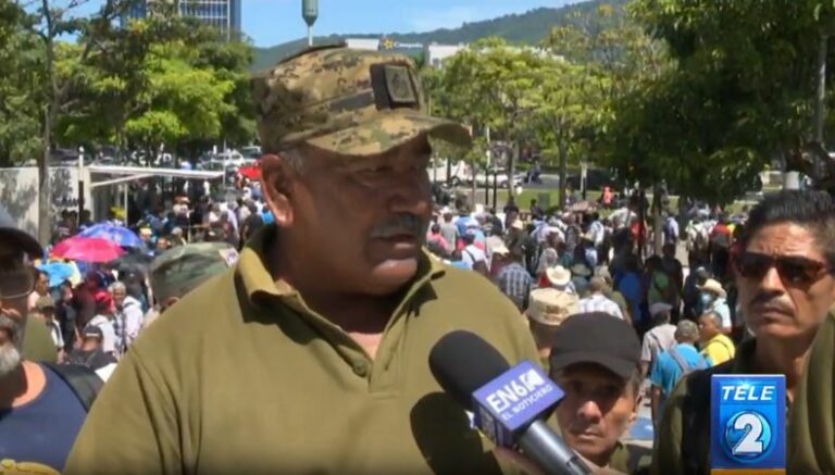 Los veteranos de la Fuerza Armada y excombatientes del FMLN se concentraron en el monumento al Divino Salvador del Mundo, a fin de marchar hasta Casa Presidencial. Tenían dos peticiones para el Ejecutivo, que actualicen el registro de los excombatientes, para incorporar a los que han quedado fuera.