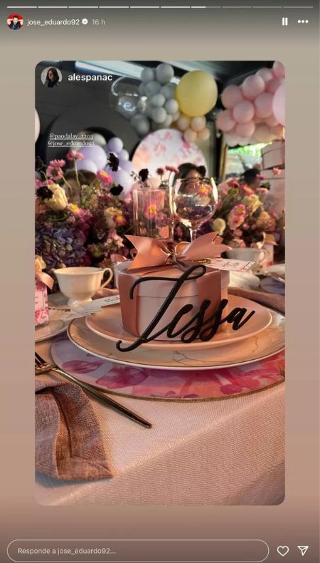 Por su parte, en el video que José Eduardo reveló, se aprecia una decoración donde predomina el color rosa pastel. Además, destacó el color blanco, amarillo, azul y dorado. Asimismo, hubo globos y en la mesa de los invitados en cada uno de los platos había sobre él un regalo con el nombre de la bebé, Tessa.