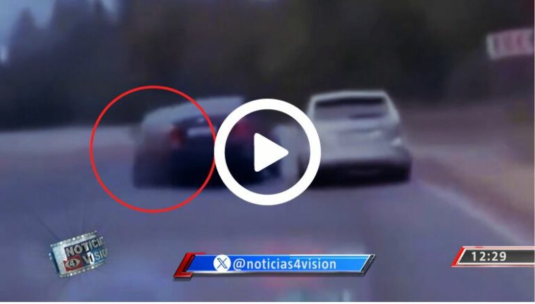 De un momento a otro, aparece un automóvil que impacta al que quiere sobrepasar. El choque es de frente, sin posibilidades de esquivarlo. Se puede ver cómo se encienden las luces rojas traseras y busca desviar su rumbo para evitar impactar, pero es casi imposible.