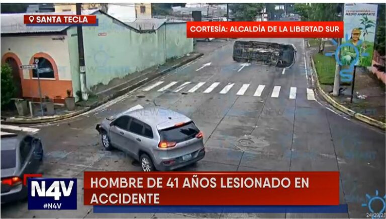A primeras horas de la mañana, sobre la 18 avenida Sur en Santa Tecla, un microbús impactó contra una camioneta, provocando que este volcara y terminara sobre el pavimento unos metros más adelante. Todo quedó grabado, gracias a las cámaras de videovigilancia de la alcaldía del municipio.