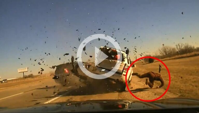 En un video filmado por una cámara de control ubicada en una parada de tráfico en Estados Unidos, se muestra el momento exacto en que un agente de la patrulla de caminos de Oklahoma, fue víctima de un aparatoso siniestro vial.