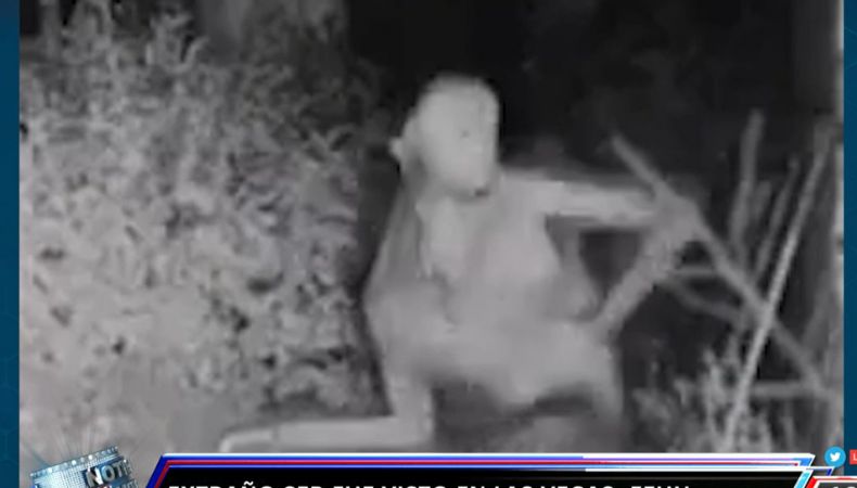 En redes sociales se ha popularizado un video de una cámara de seguridad en la propiedad de una persona, que en lo profundo de la noche parece haber captado un ser de características extrañas, al parecer no humano, rondando las cercanías de la vivienda. Muchos le han atribuido apariencia de ‘alien’.