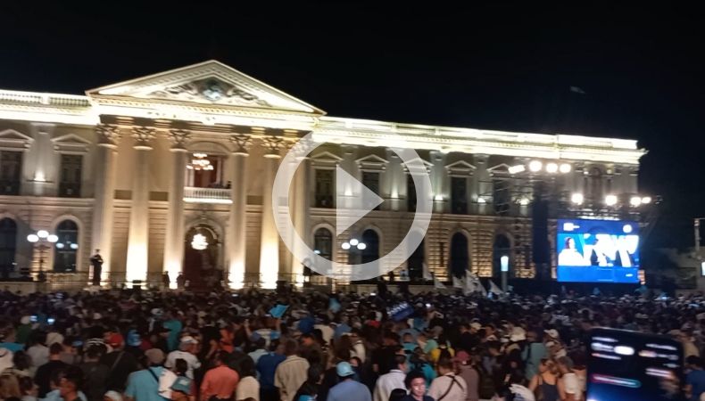 A esta noche, así se encuentra la Plaza Gerardo Barrios en San Salvador, simpatizantes de Nuevas Ideas se han concentrado en este lugar a la espera de Nayib Bukele.