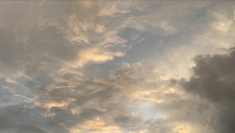 A pesar de que se escuchan truenos, que avisan la proximidad de lluvias en la zona del Área Metropolitana de San Salvador (AMSS), a esta hora de la noche, así se encuentra el cielo. Entre tonos amarillentos y azules, pero con ciertos tonos grises, es la postal que nos regala.