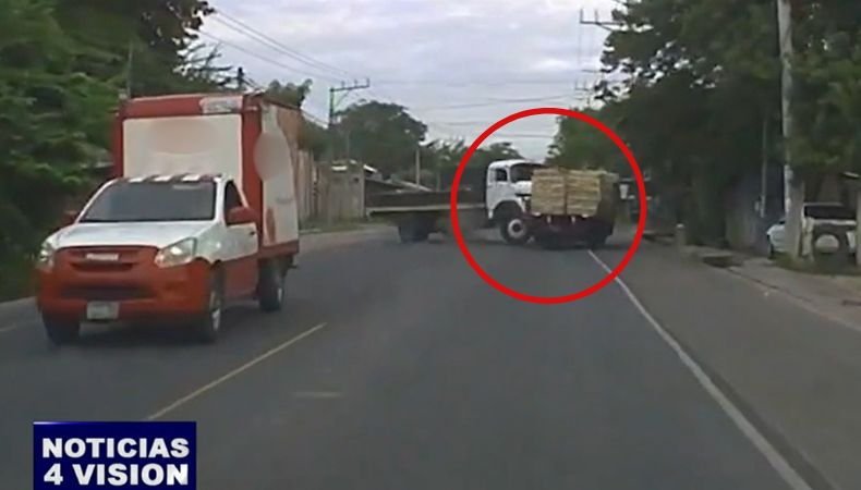 Como se puede observar en el respectivo video se evidencia como los dos camiones impactaron de manera frontal a la altura del cantón El Coyolito, en Tejutla, Chalatenango.