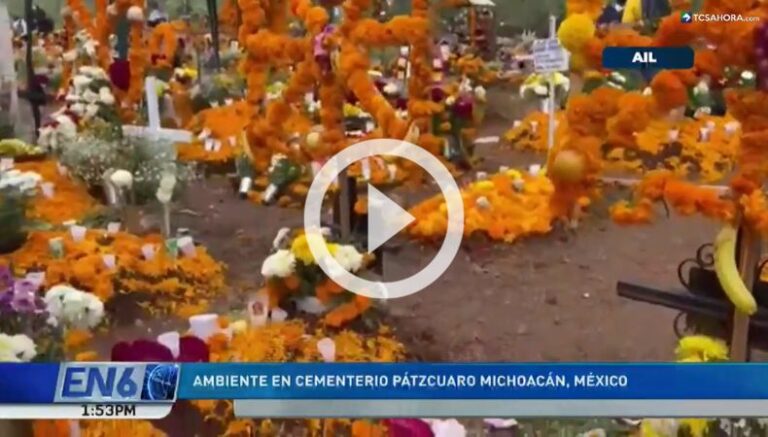 Así es el ambiente que se vive en el cementerio Pátzcuaro, en Michoacán; donde cientos de familias han acudido a visitar las tumbas de sus familiares o seres queridos.
