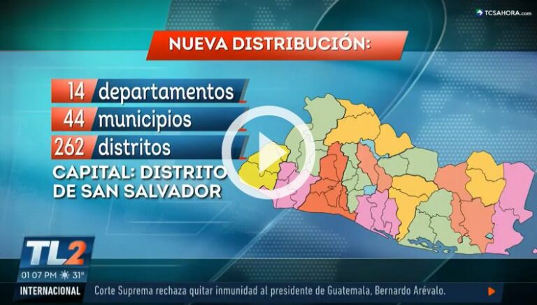 ![[Video] Así será la nueva distribución territorial Nueva distribución territorial de El Salvador.](https://d21tucfpen3j82.cloudfront.net/wp-content/uploads/2024/04/30153611/Video-Asi-sera-la-nueva-distribucion-territorial--696x396.jpg)