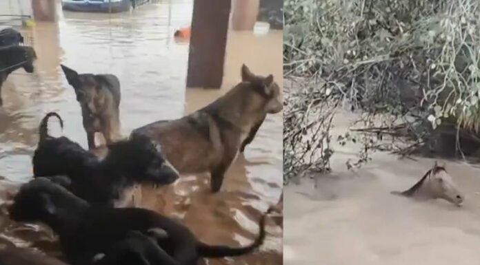 Otro caso que se viralizó es el de un refugio de caninos. Una de sus cuidadoras grabó la situación que vivían las mascotas en medio del agua que había ingresado hasta su hogar. Pese a que hay equipos de emergencia evacuando, advertía que la ayuda para salvar a los perritos todavía no se había logrado, por lo que seguían en el lugar junto a las mascotas.