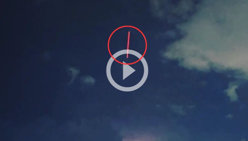 Si se observa con cuidado en una parte del video se distingue un cuerpo alargado de color rojizo, que aparece en el cielo, al mismo tiempo que se produce una descarga eléctrica.