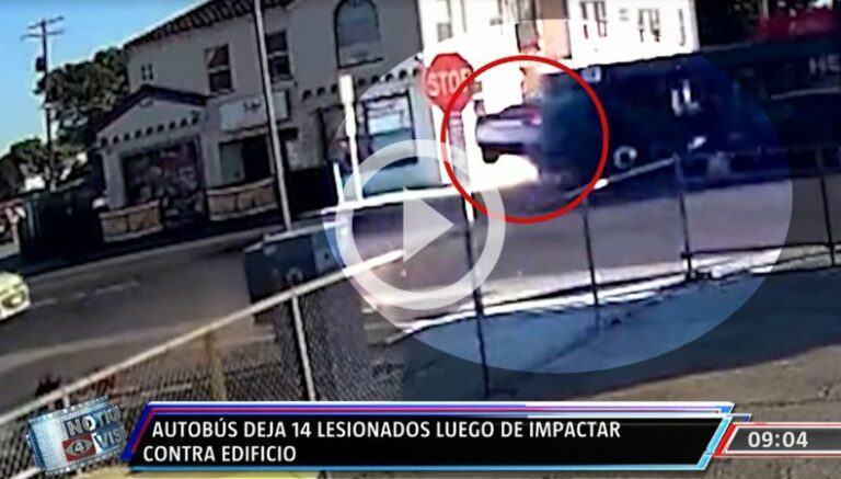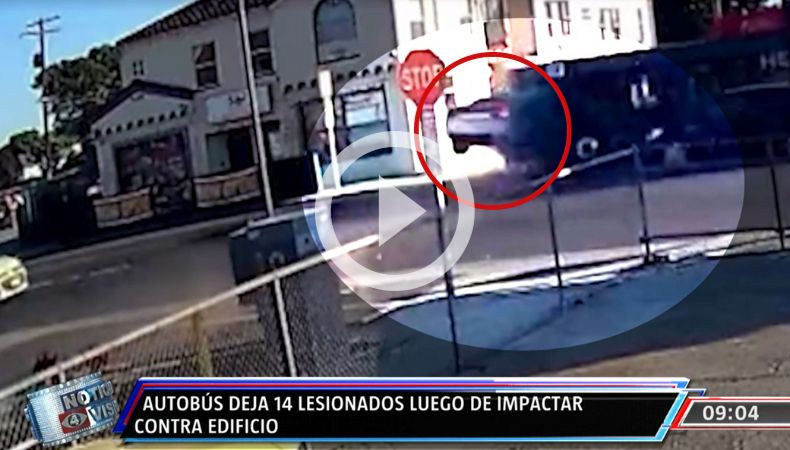 Como se observa en el video, el auto de color blanco viajaba por la Avenida California, en sentido sur, y choca contra el autobús.