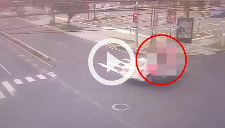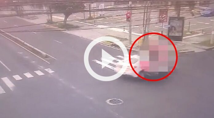 A través de un video de seguridad, se puede observar cómo ocurrió el siniestro vial. Se muestra que el motociclista conducía a alta velocidad e irrespetó el semáforo (que se encontraba en color rojo).
