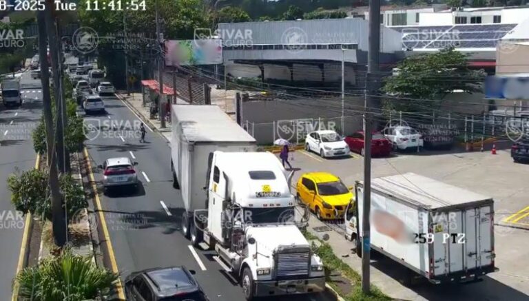 En horas de la mañana, las cámaras del sistema de videovigilancia de la alcaldía de San Salvador Centro captaron al conductor de una rastra que realizaba una maniobra imprudente en sentido contrario en la alameda Manuel Enrique Araujo, en San Salvador Centro.