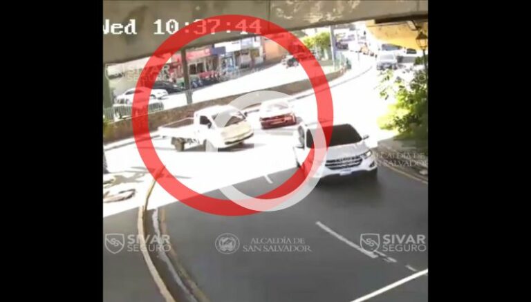 Las cámaras de Sivar Seguro, de la Alcaldía de San Salvador, evidenciaron la imprudencia de un conductor que provocó un percance vial, mientras transitaba sobre el redondel Árbol de la Paz, en San Salvador.
