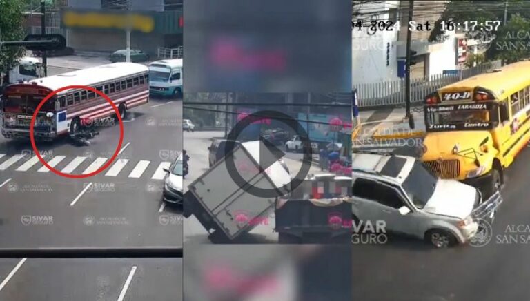 Los accidentes de tránsito continúan registrándose a diario y, algunos de ellos, quedan grabados por las cámaras de los sistemas de videovigilancia de diferentes alcaldías del Área Metropolitana de San Salvador (AMSS).