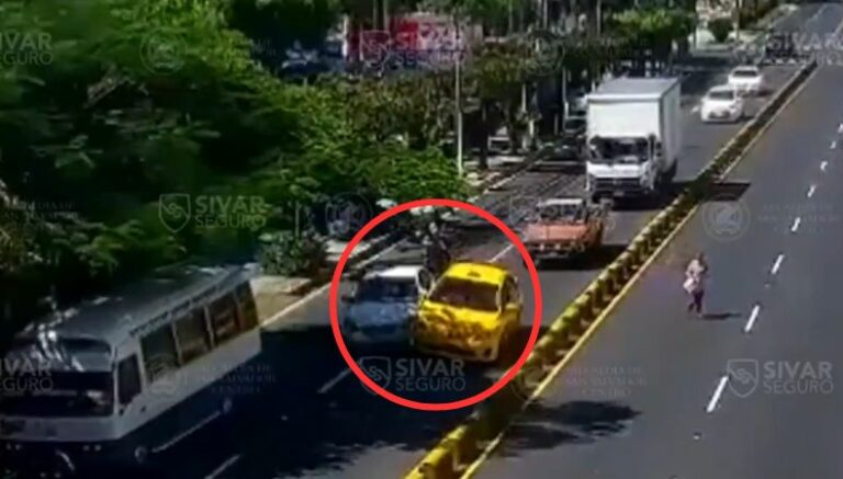 En horas de la mañana, dos vehículos colisionaron en el Paseo General Escalón, cerca de un centro comercial ubicado en la zona. El suceso quedó registrado por las cámaras de vigilancia de Sivar Seguro, de la alcaldía de San Salvador Centro. Por ese medio, captaron el momento exacto en que ambos automóviles impactaron en el lugar.