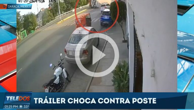En Oaxaca, México, una cámara de seguridad captó el momento exacto en el que un tráiler terminó impactando contra un poste de energía eléctrica en una vía muy transitada. Según información de la policía, el conductor perdió el control de la unidad.