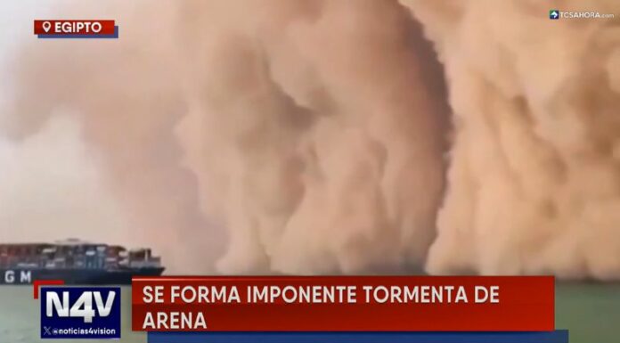 A través de redes sociales se dio a conocer un impactante fenómeno que tuvo lugar en Egipto, se trata de una enorme tormenta de arena. En las imágenes se observa cómo una imponente e intensa nube de arena invade el cielo del país, haciendo que la visibilidad se reduzca casi por completo.