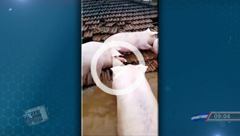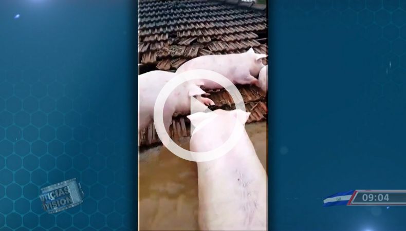 En el estado de Brasil, Río Grande del Sur, unos cerdos nadaron hasta el techo de una vivienda para salvarse de morir ahogados. En el video se puede observar algo muy curioso, es que unos animales se miran aterrorizados, pero otros descansan y comen a pesar del peligro.